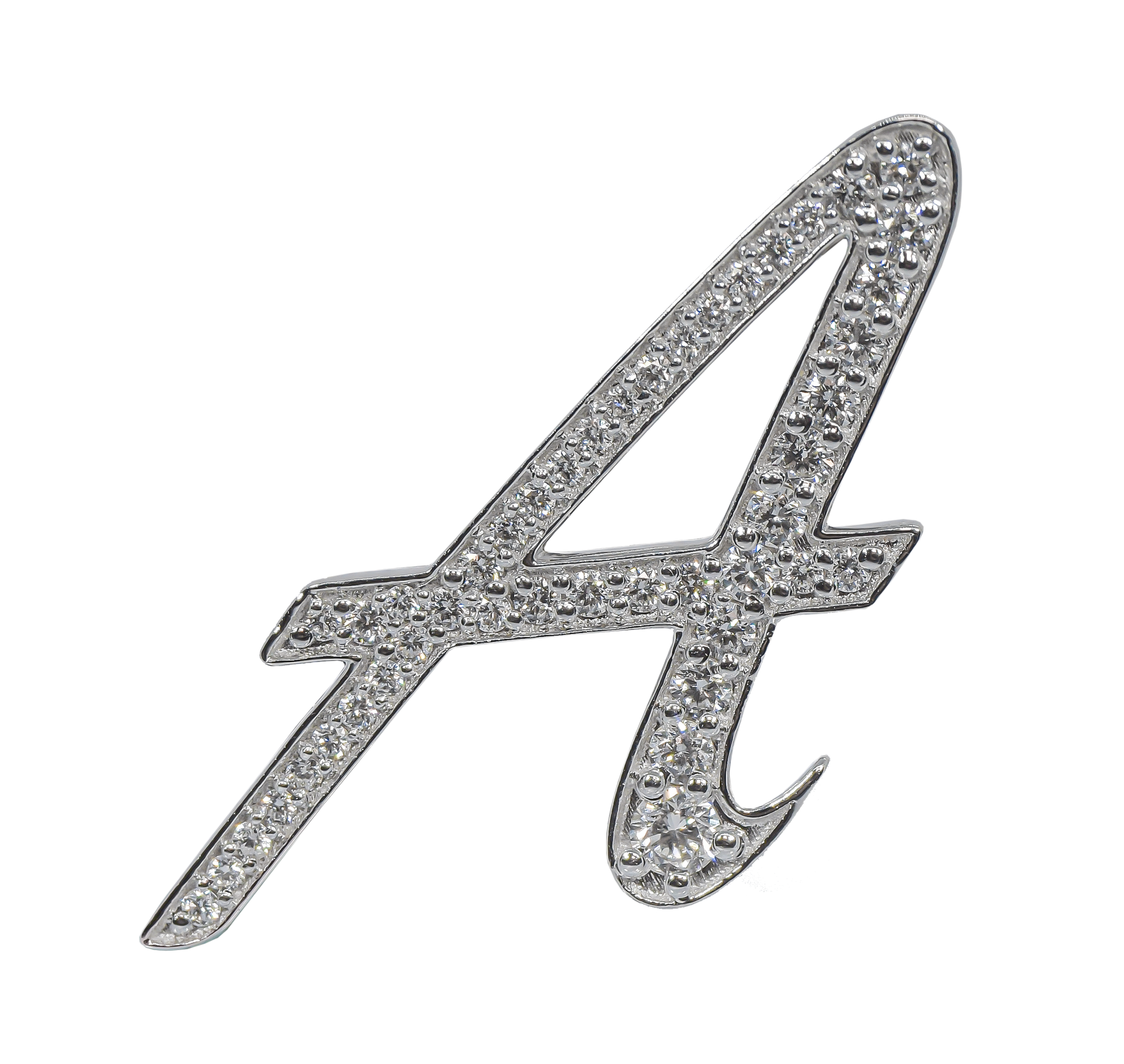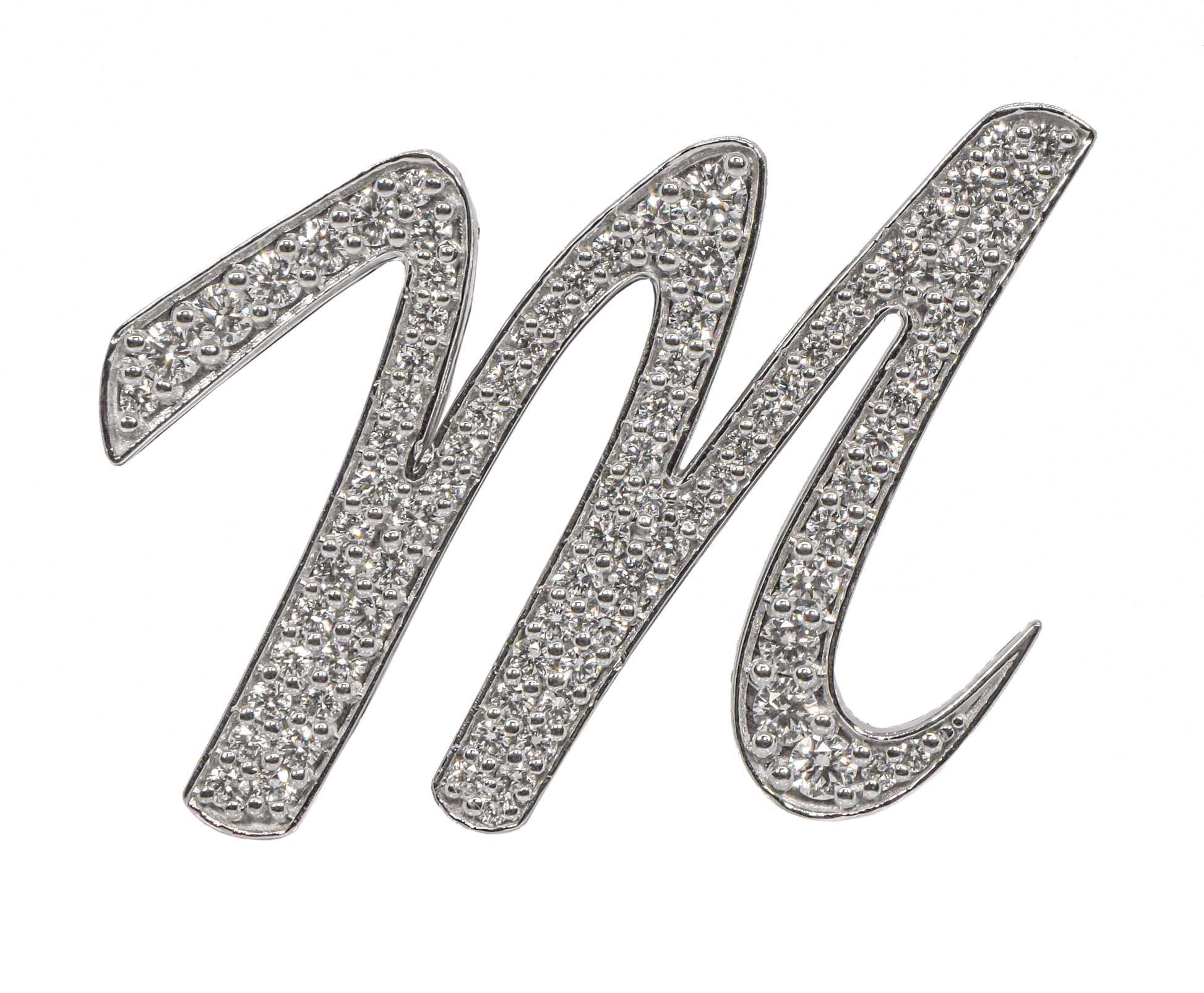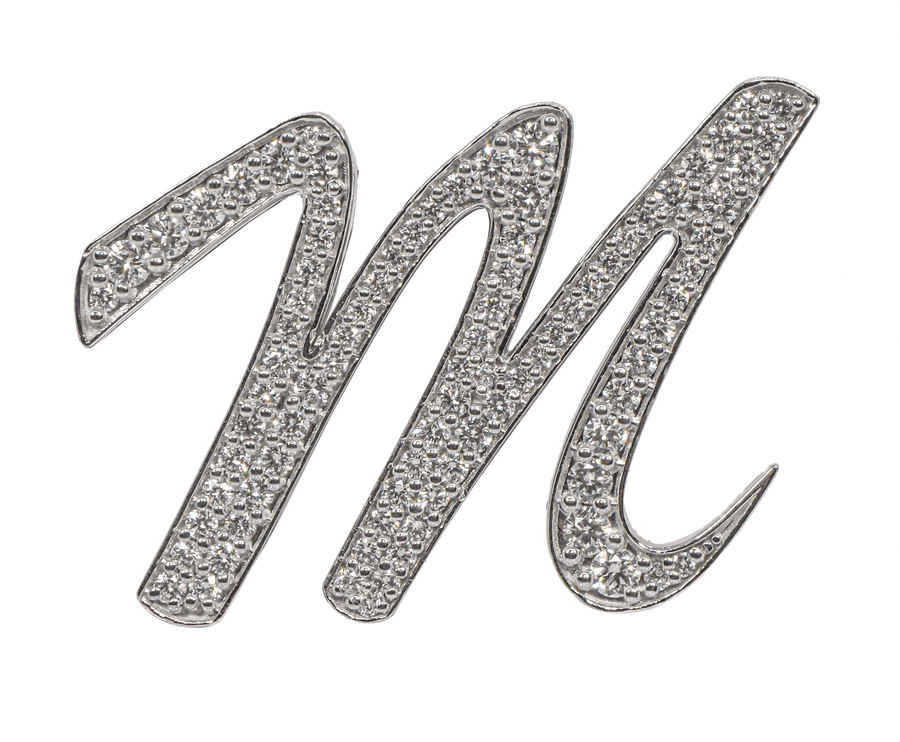 Design: Flowing cursive letters crafted in pavé diamond setting