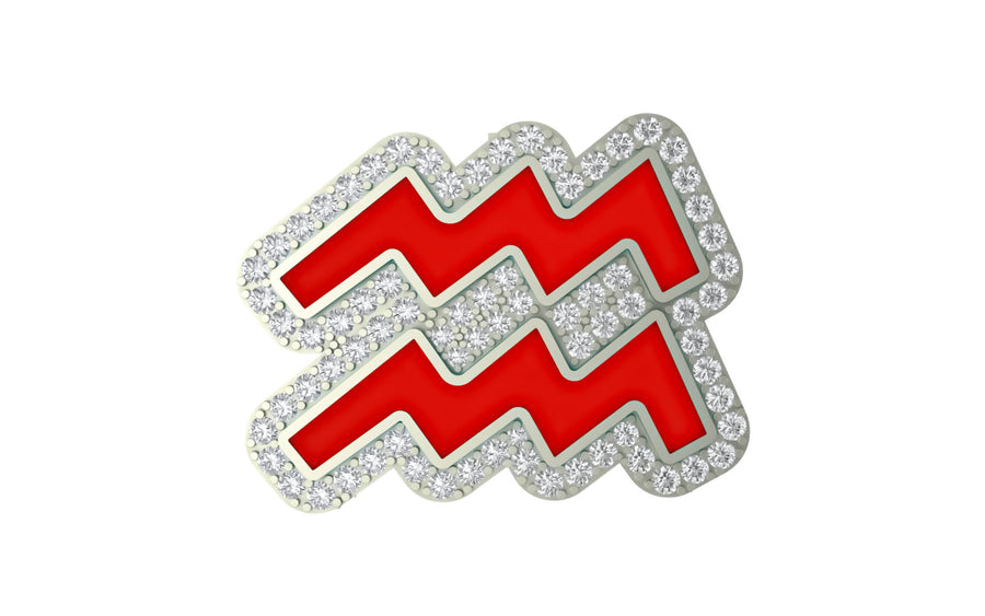 Design: Aquarius zodiac symbol in pavé diamonds with vivid enamel accents