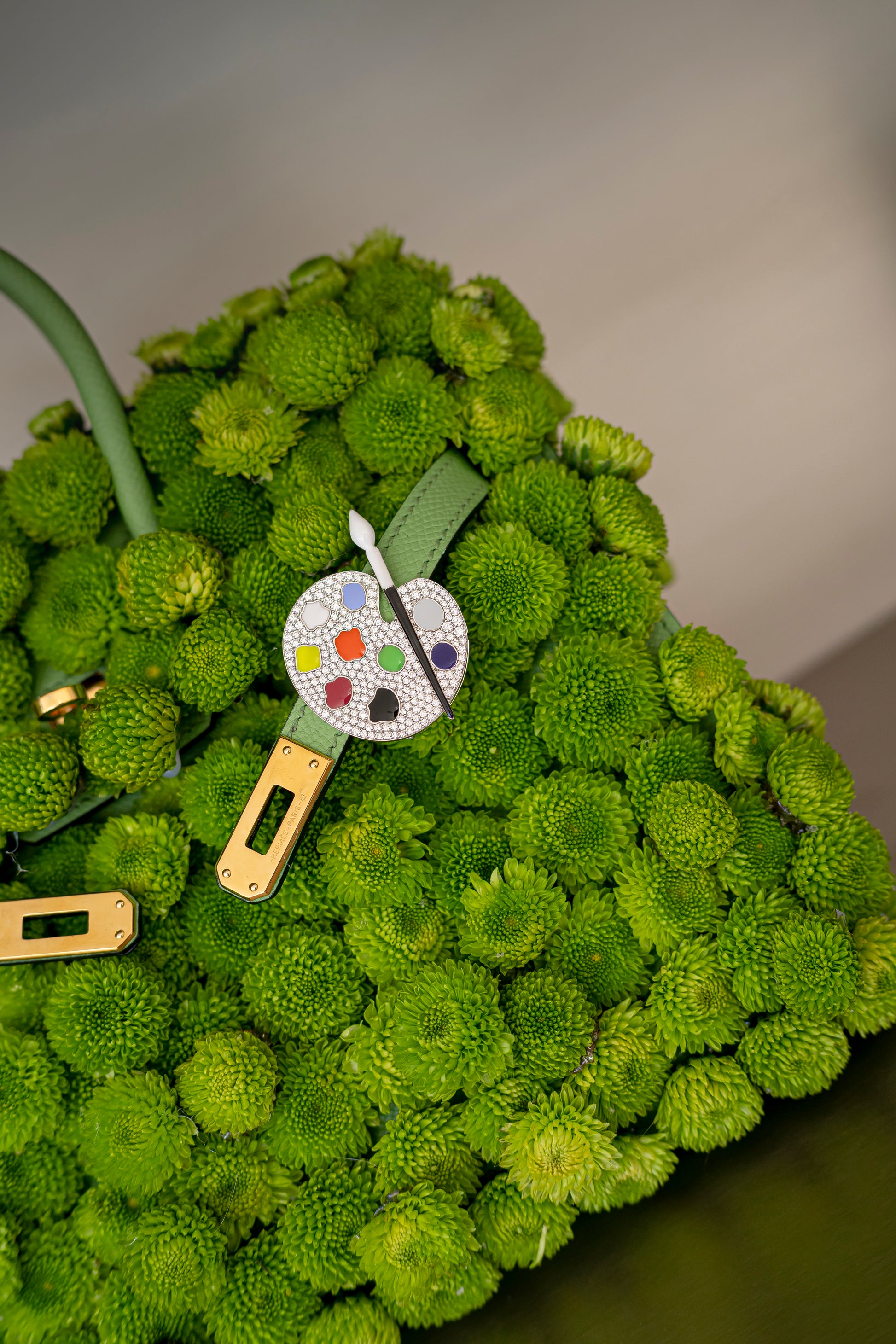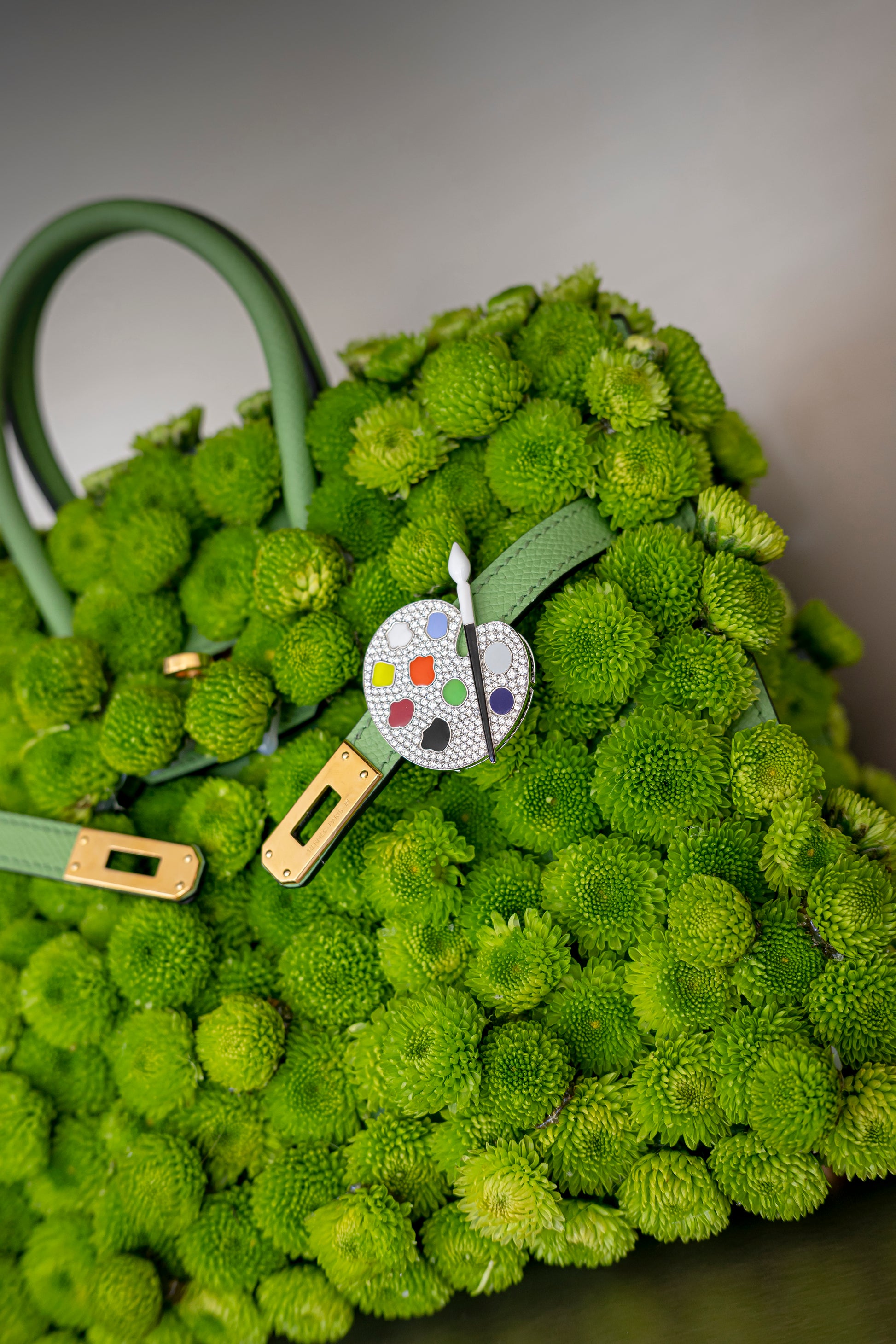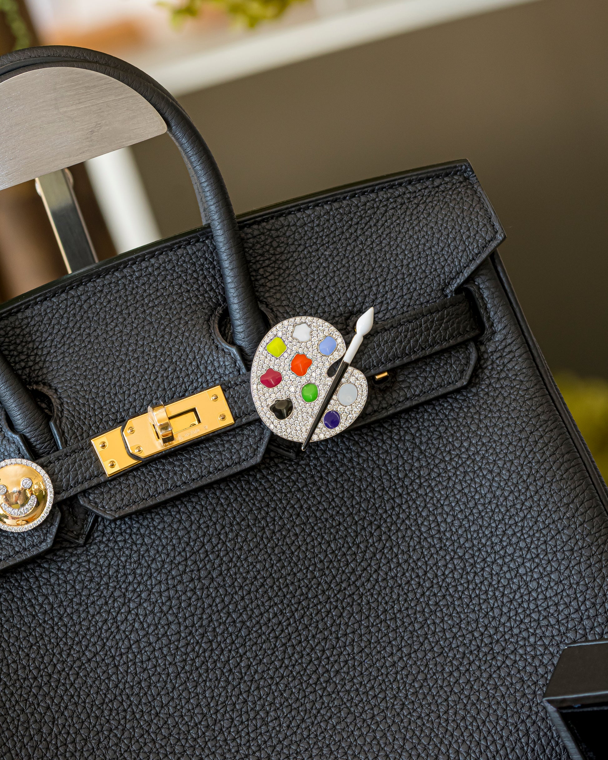 Part of the whimsical Bag Bijoux collection, the ARTIST PAINT PALETTE charm enhances iconic handbags such as the Birkin 25, Kelly 25, and Kelly Cut — while effortlessly transforming into a pendant with an optional chain. Designed for visionaries who see the world as their canvas, it’s a wearable tribute to inspiration, color, and artistry.