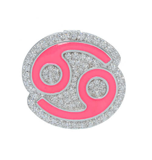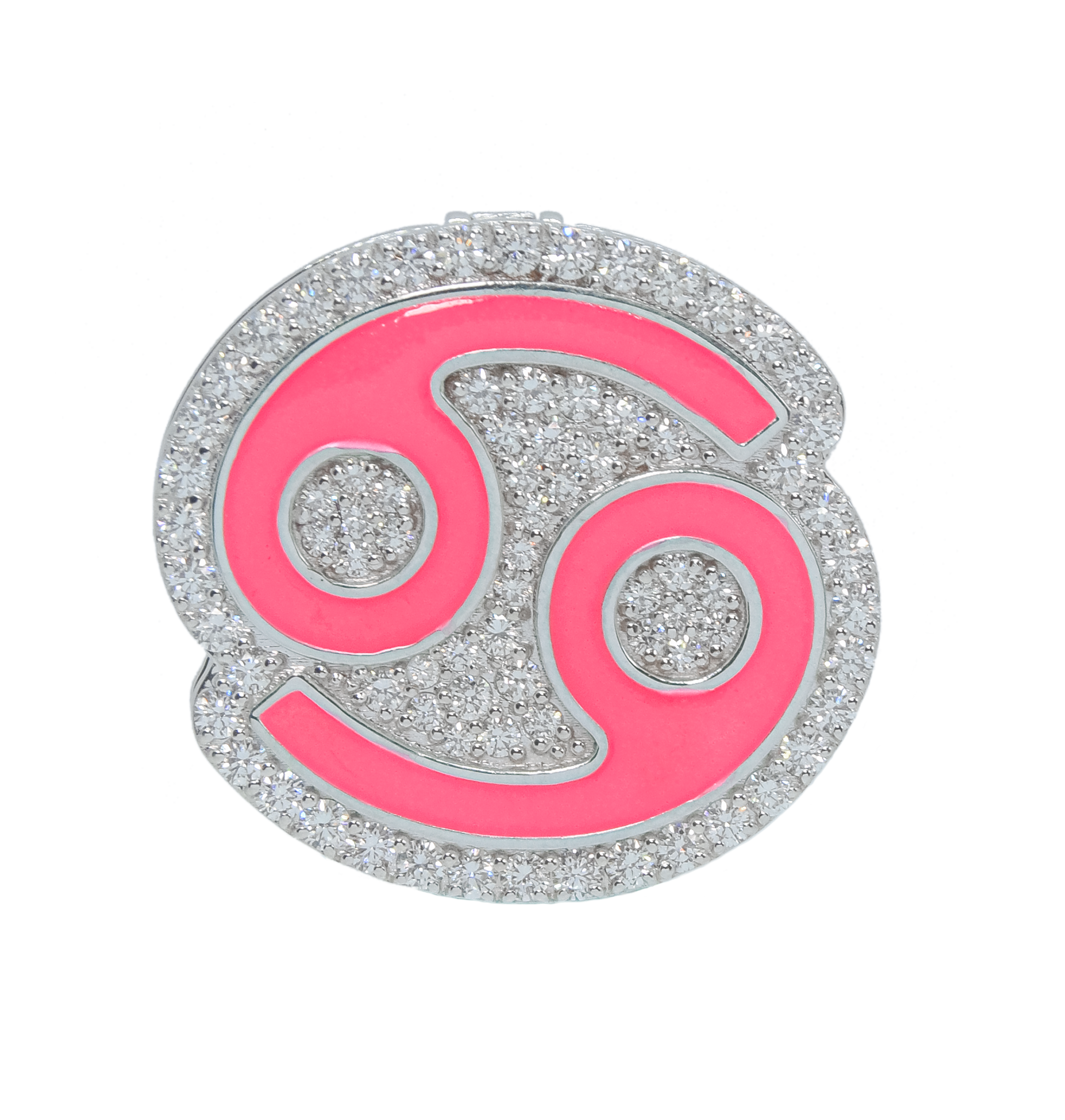 Design: Cancer zodiac symbol with pavé diamonds and neon enamel accents