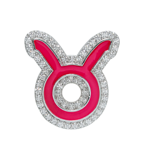 Design: Taurus zodiac symbol in pavé diamonds with enamel detailing