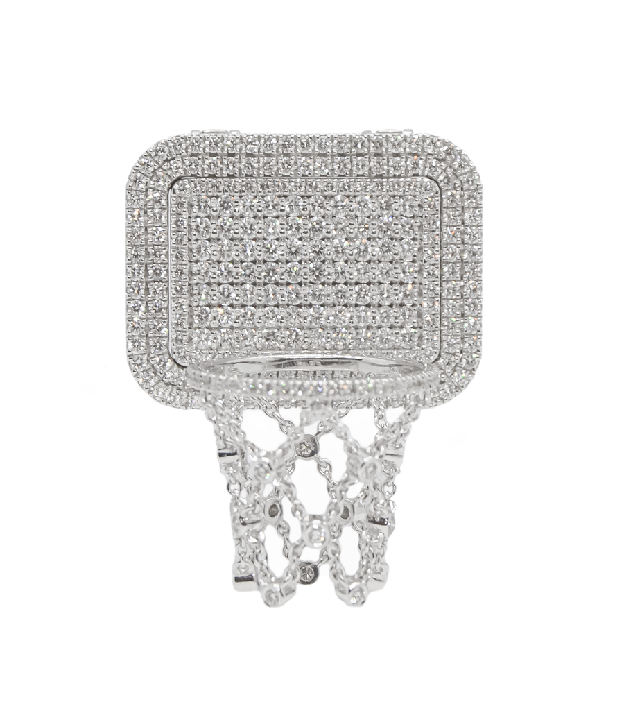 Where movement meets magnificence. The BASKETBALL Bag Bijoux is a sculptural celebration of athletic elegance, crafted in gleaming 18K white gold and pavé-set with natural FG/VVS-VS clarity diamonds. This dynamic charm captures the energy of the game in a refined, wearable form.