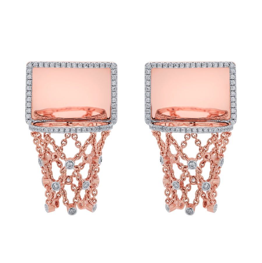 Shop the Bold 18K Rose & Yellow Gold Basketball Hoop Earrings with Full Natural VS Diamonds Handcrafted in India by ASHNA MEHTA