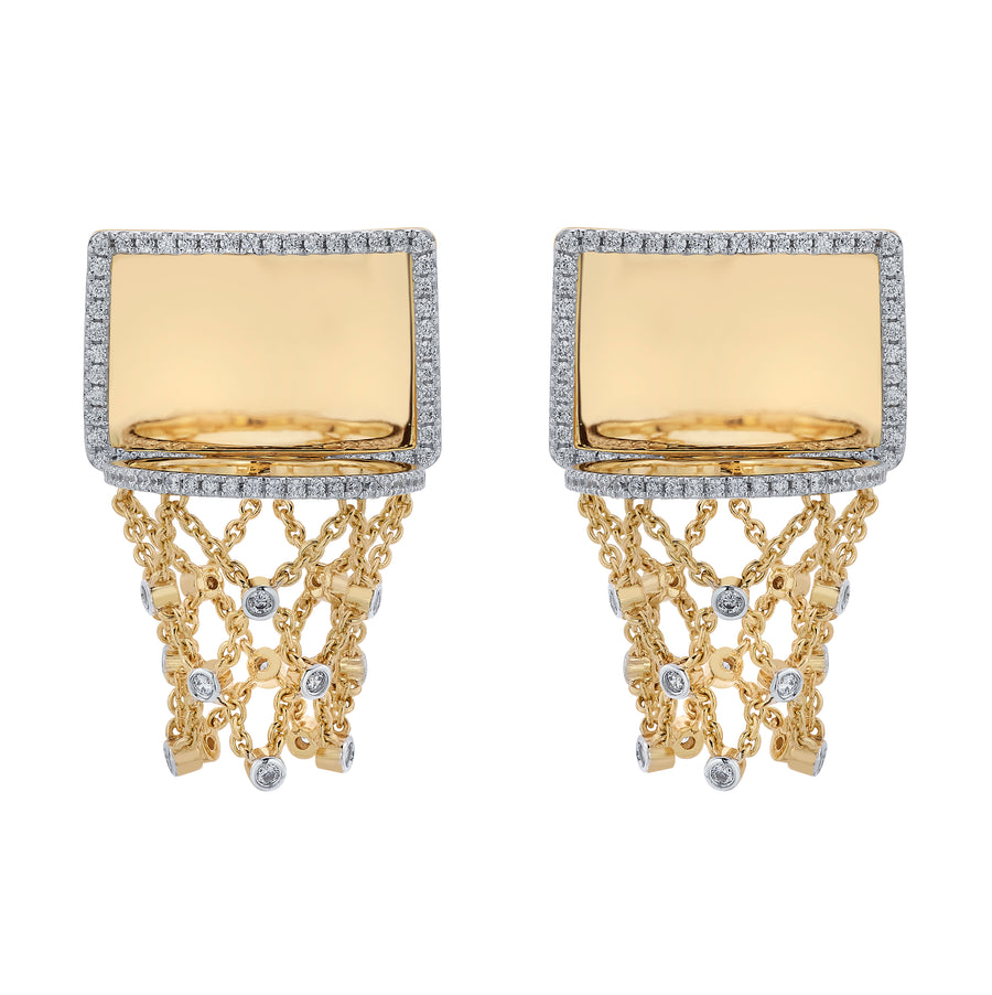 Basketball Hoop Earrings Bordered set in 18KT Yellow Gold with Natural VS Diamonds.