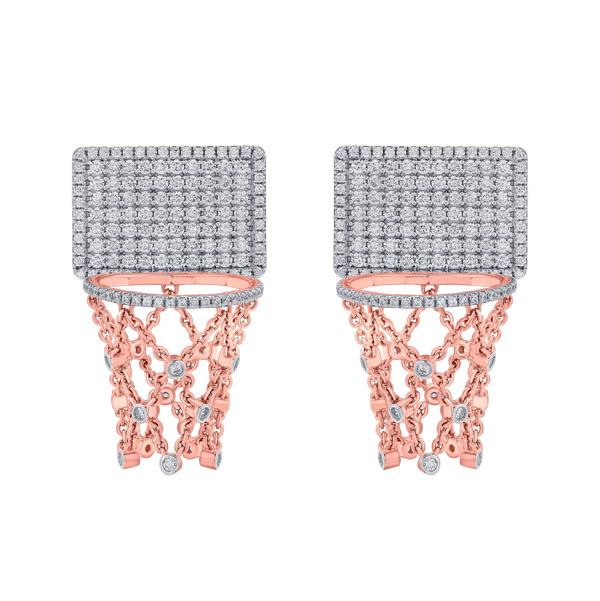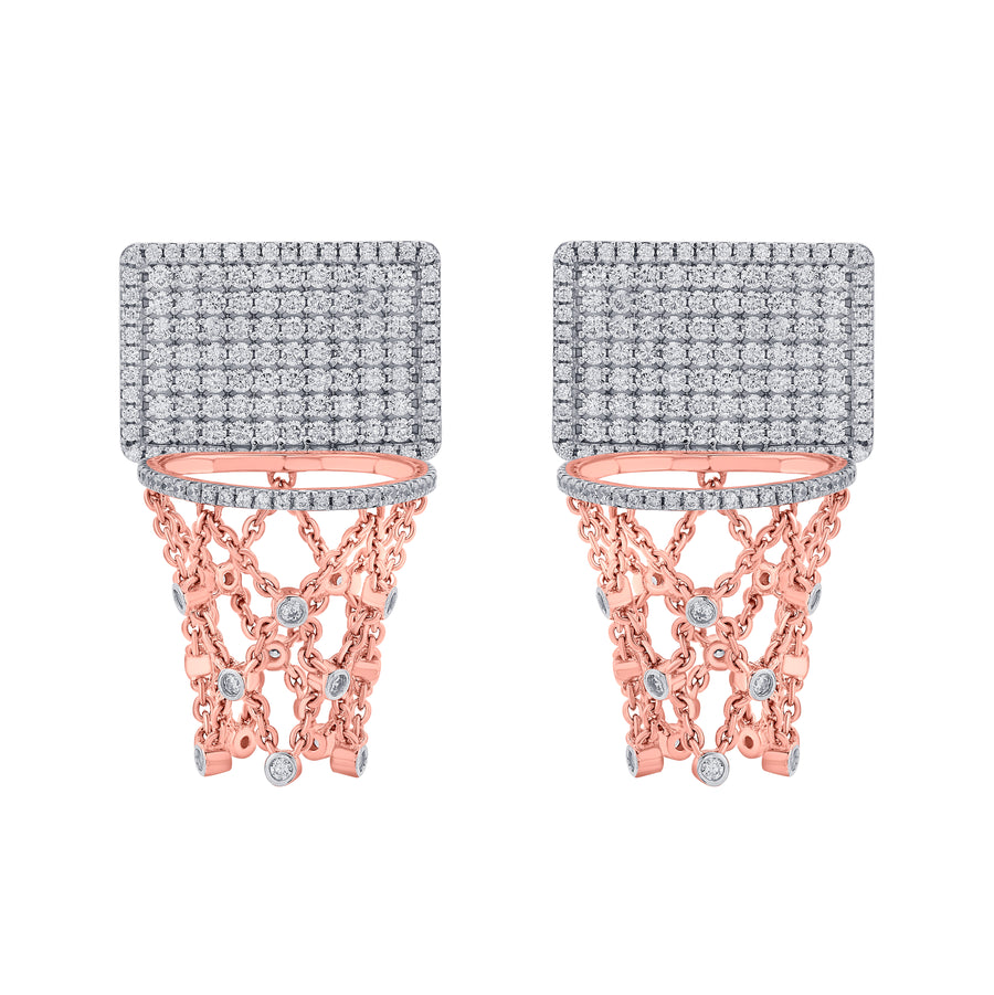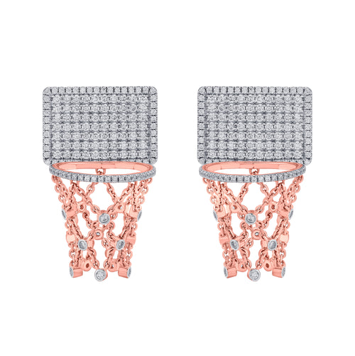 Basketball Hoop Earrings Rose Gold with Diamonds
