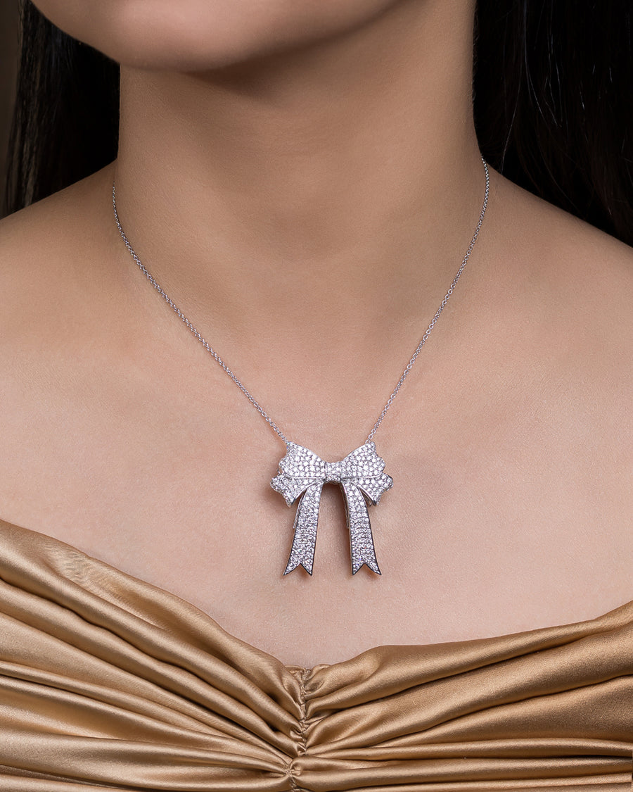 An elegant expression of poise and sophistication. The Bow Bag Bijoux in radiant 18K white gold is exquisitely adorned with natural FG/VVS-VS clarity diamonds, transforming the timeless symbol of a bow into a high-jewelry accent. This piece embodies femininity, refinement, and versatility—making it a standout in both design and sentiment.