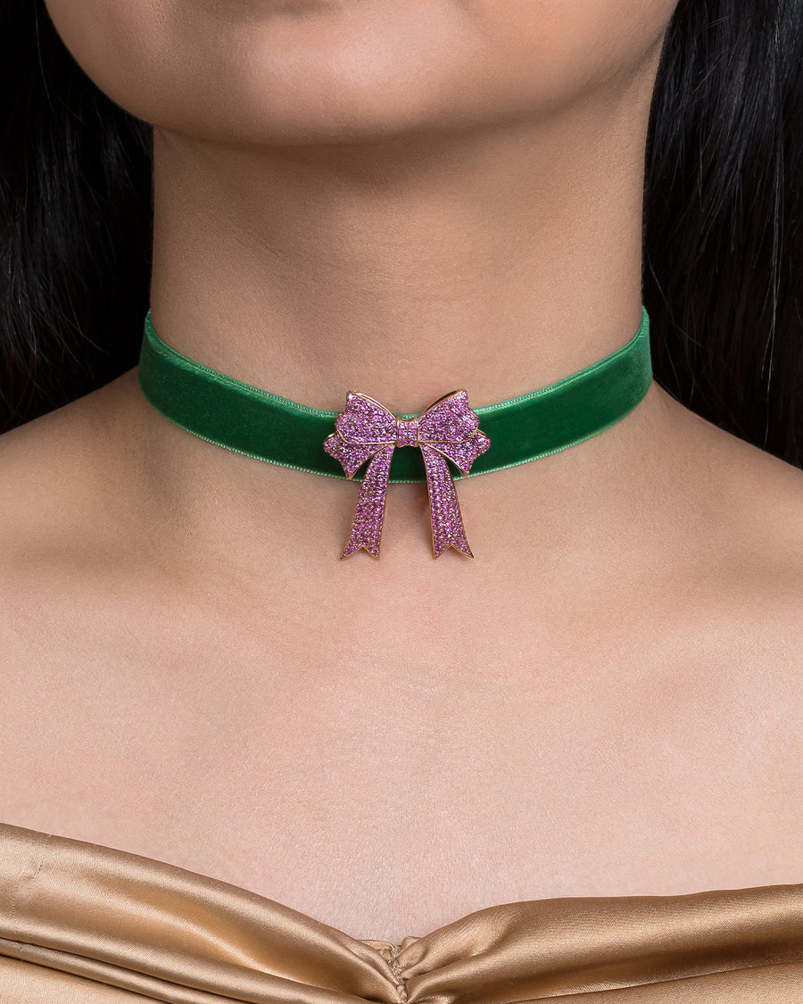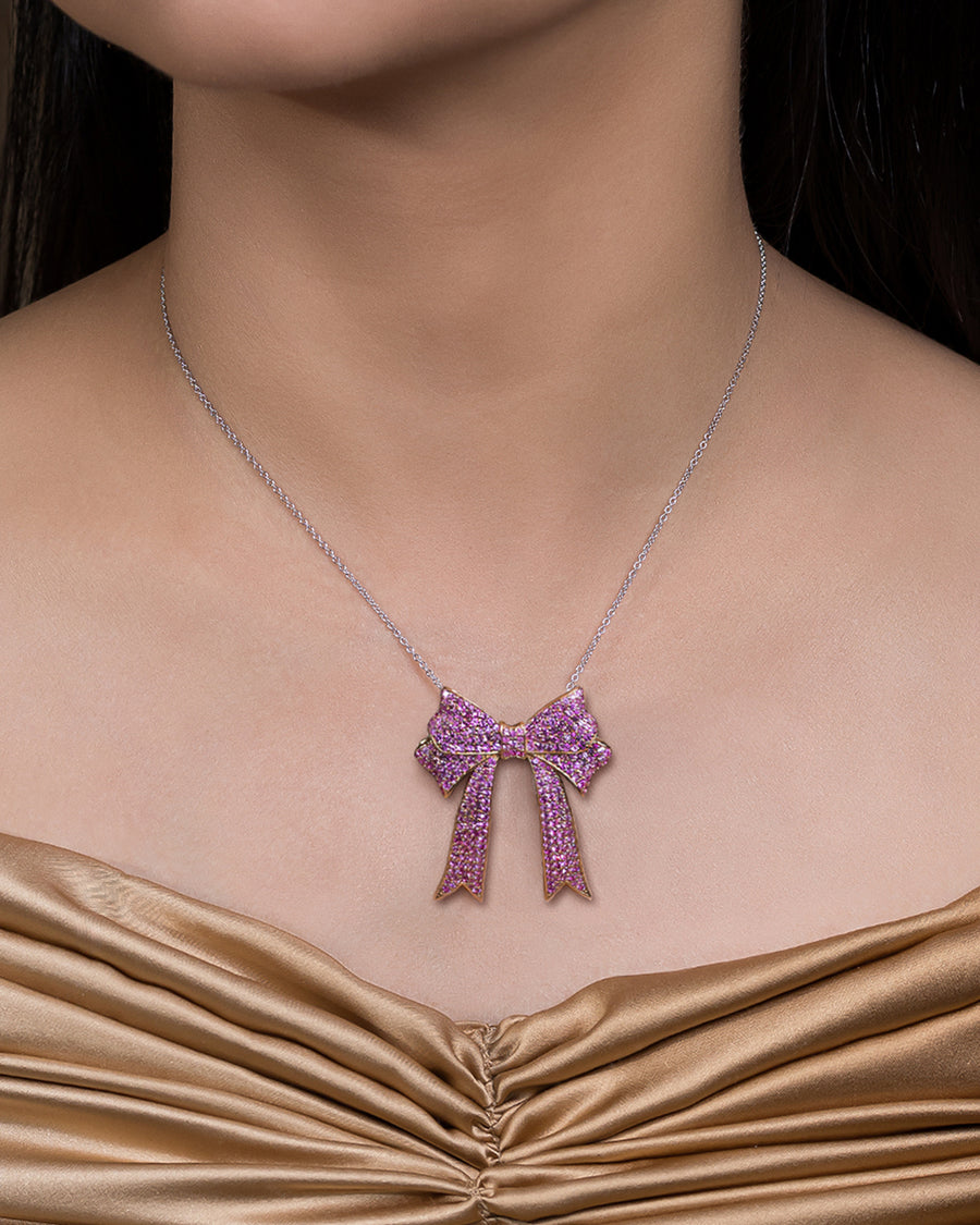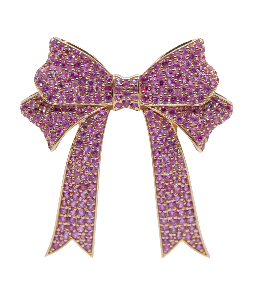 A delicate statement of femininity, grace, and refined charm. The Bow Bag Bijoux is sculpted in glowing 18K rose gold and adorned with natural pink sapphires, capturing the timeless elegance of a tied ribbon in a luxurious, jewel-encrusted form. This piece adds a playful yet polished accent to your most treasured accessories.