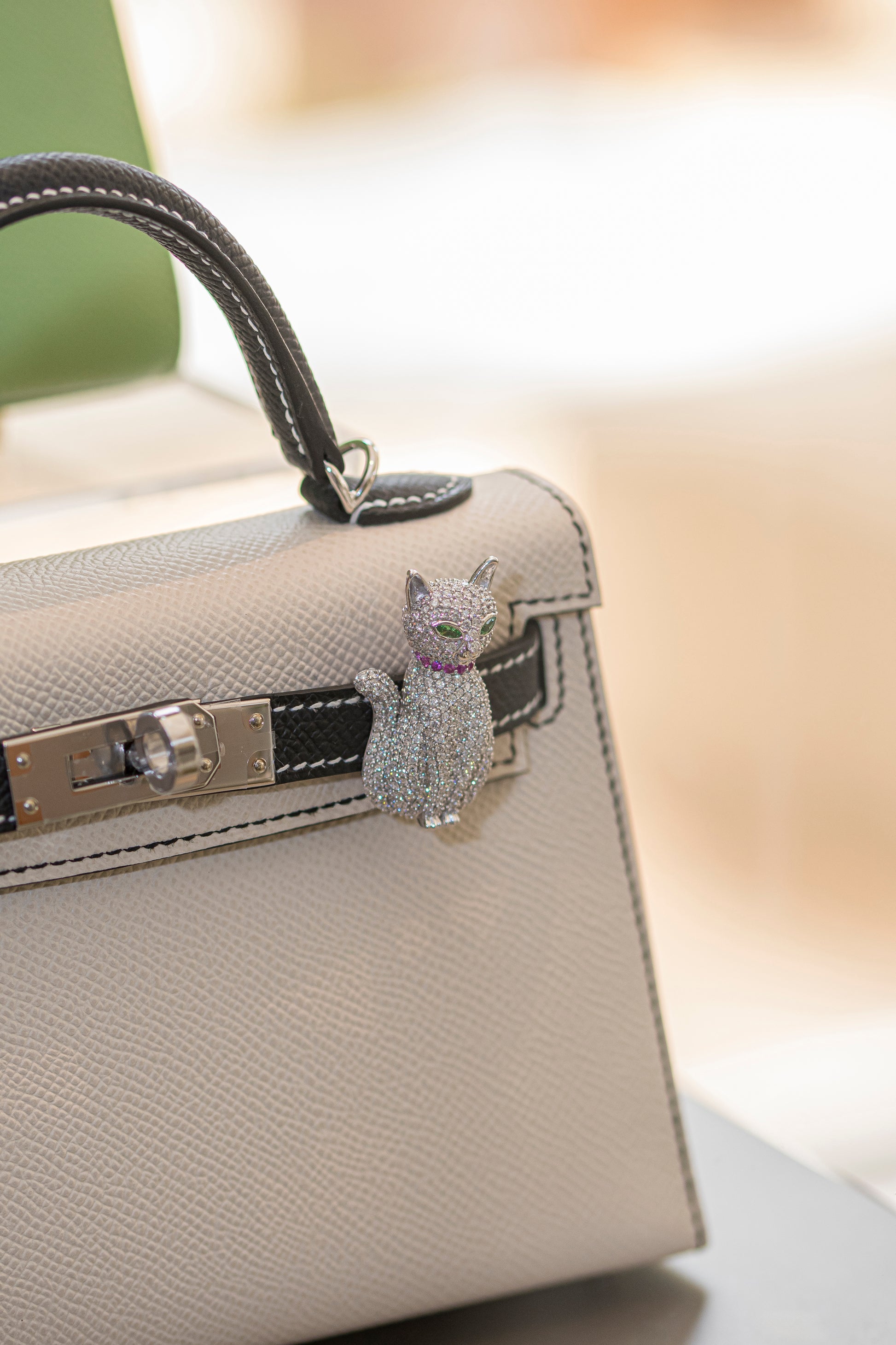 As part of the collectible Bag Bijoux collection, the CAT charm is designed to complement luxury handbags such as the Birkin 25, Kelly 25, and Kelly Cut. Its medium-scale form makes it ideal for daily elegance, and it may also be transformed into a pendant with the use of a separate chain — perfect for those who love a touch of whimsy wherever they go.