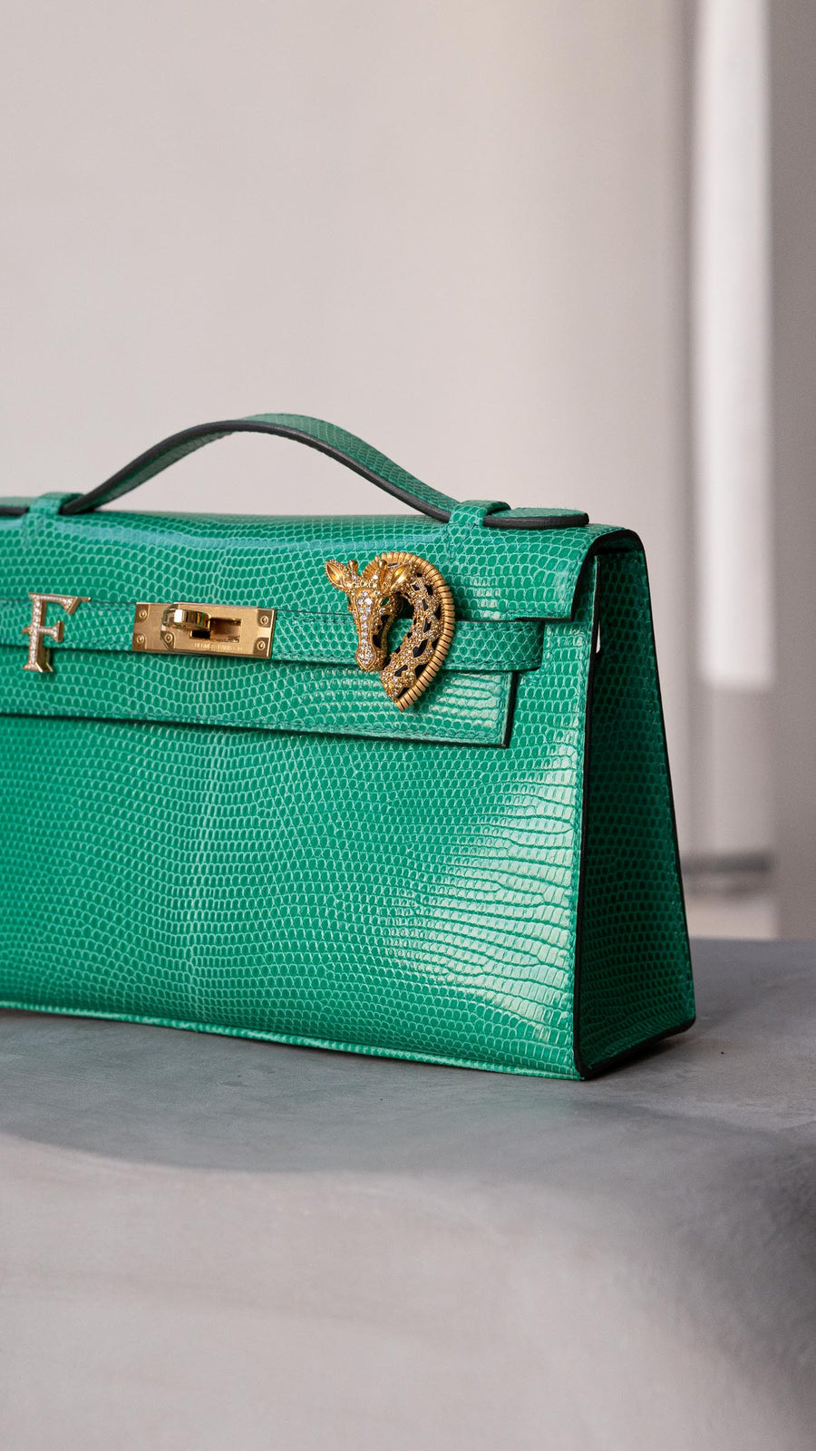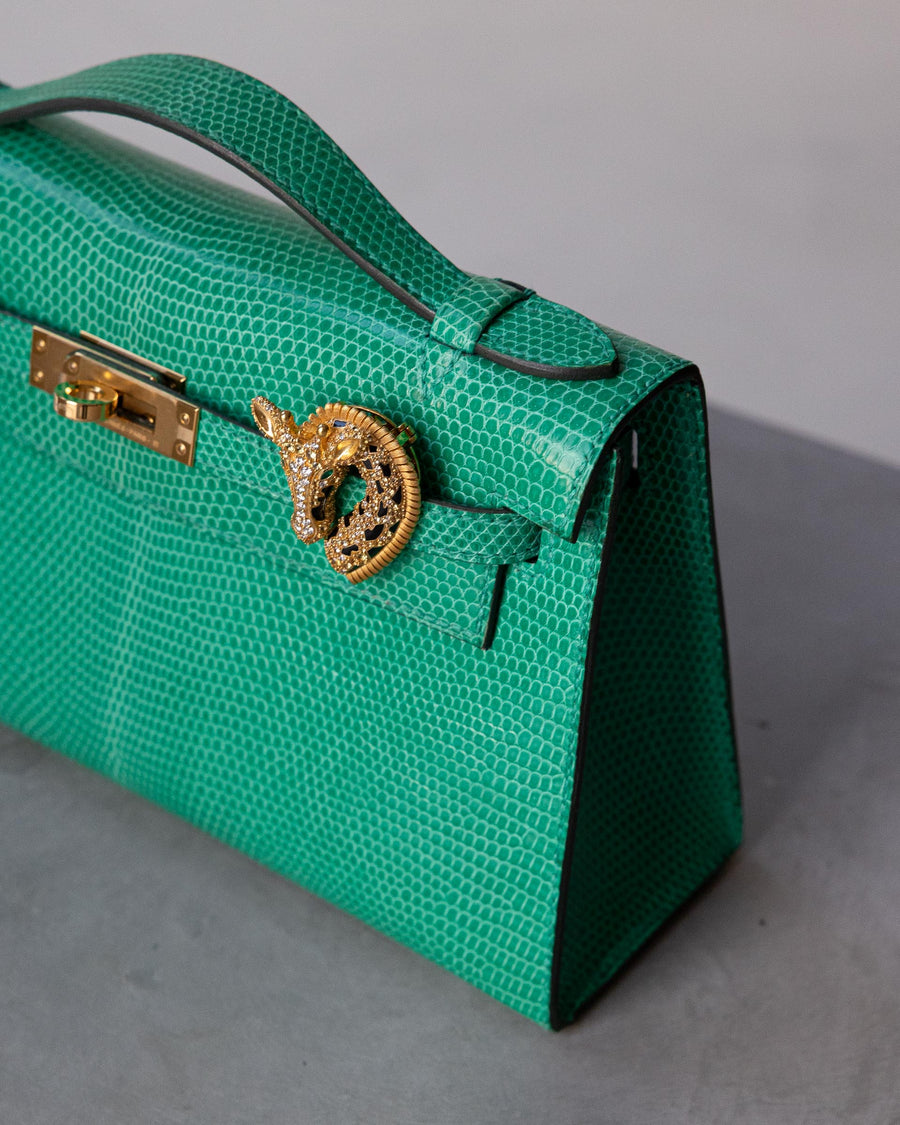 Part of the signature Bag Bijoux collection, the Giraffe is engineered to elegantly enhance the straps of Hermès classics such as the Birkin 25, Kelly 25, and Kelly Cut, while remaining versatile enough to be worn as a pendant. Its fluid silhouette and jeweled accents make it a striking conversation piece wherever it goes.