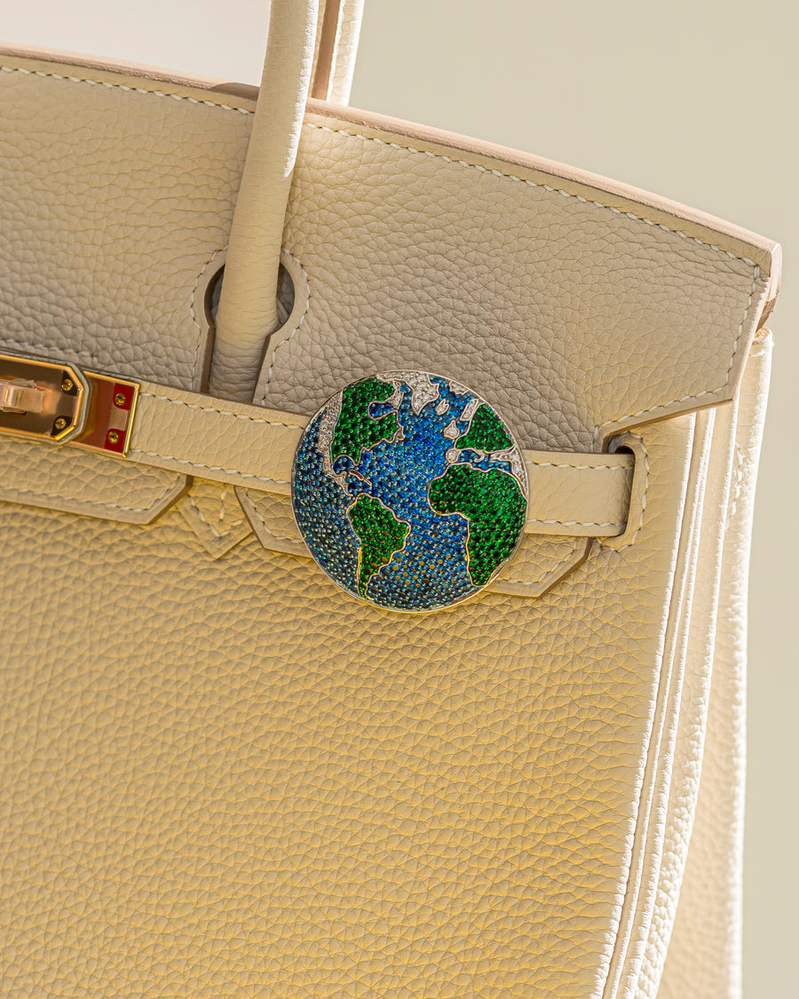 Part of the symbolic Bag Bijoux collection, the EARTH charm elevates iconic handbags such as the Birkin 25, Kelly 25, and Kelly Cut — and effortlessly transforms into a pendant when paired with an optional chain. Designed for global citizens who carry both elegance and purpose, it’s a wearable celebration of heritage, hope, and timeless beauty.