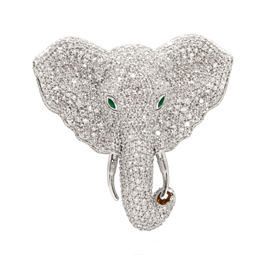 Shop this majestic Elephant Head Bag Bijoux set in 14KT with Natural FG/VVS-VS Diamonds Customization Available in Yellow Gold, White Gold & Rose Gold by ASHNA MEHTA
