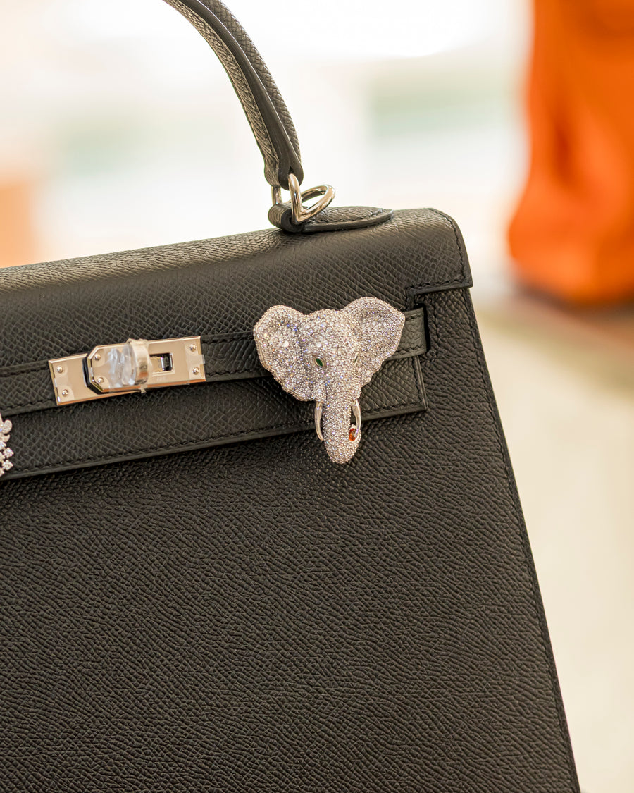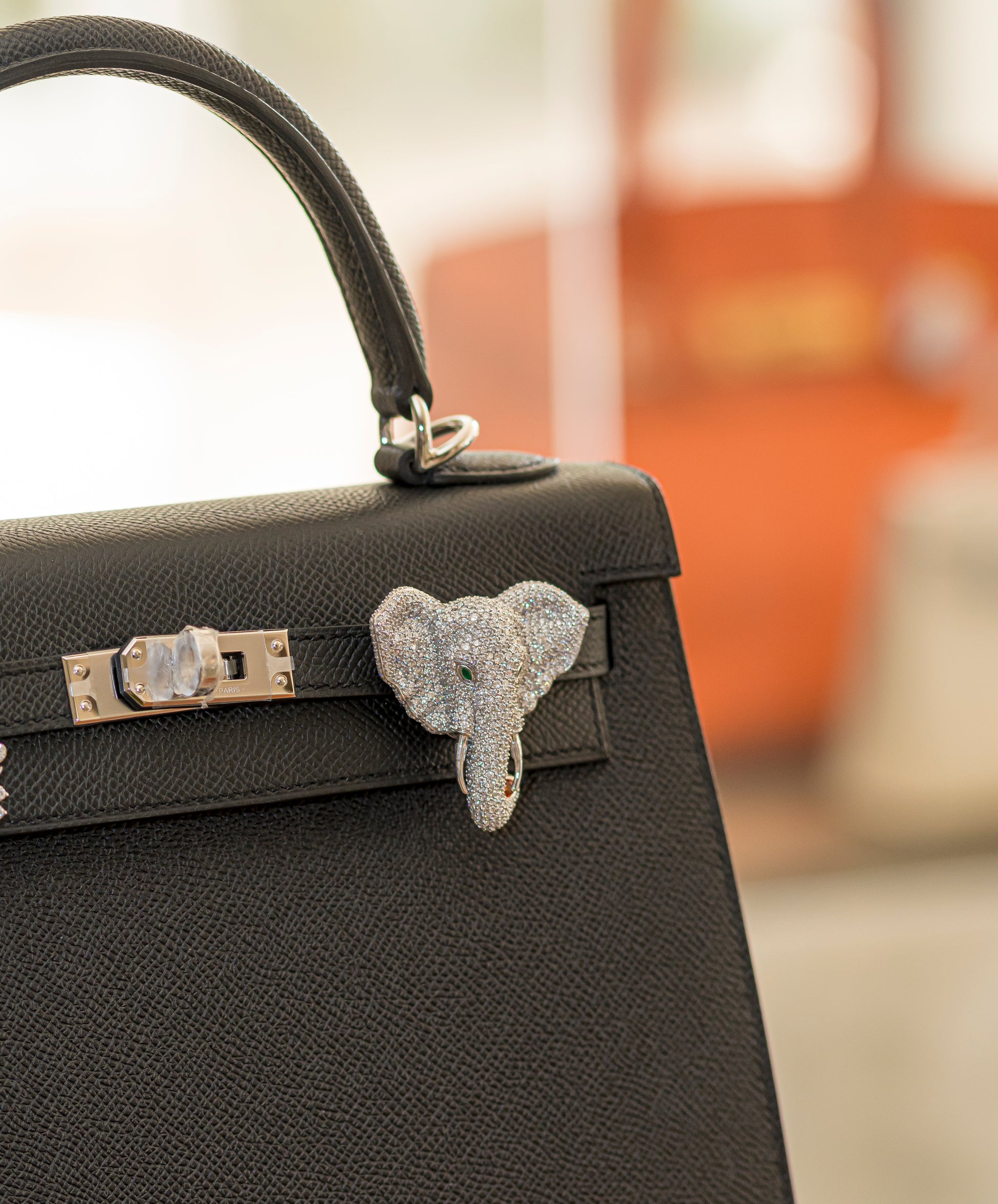 Part of the signature Bag Bijoux collection, this meaningful design is intended to complement Hermès classics like the Birkin 25, Kelly 25, and Kelly Cut. Whether styled as a powerful bag charm or worn as a symbolic pendant, the Elephant Bag Bijoux is a luxurious expression of cultural reverence and refined artistry.