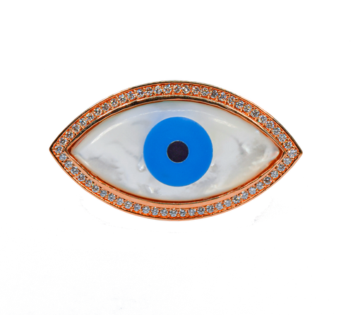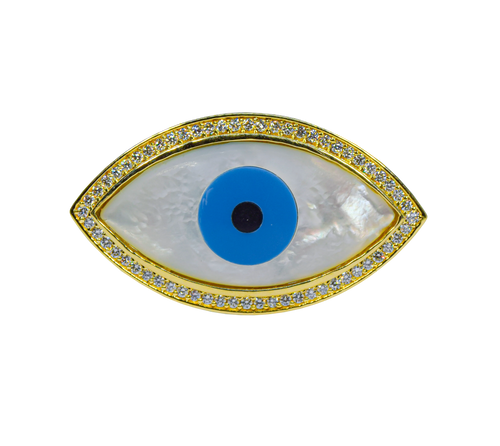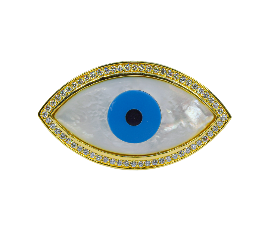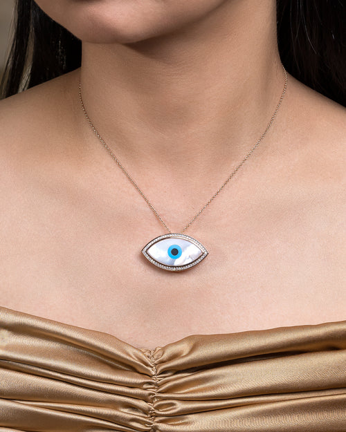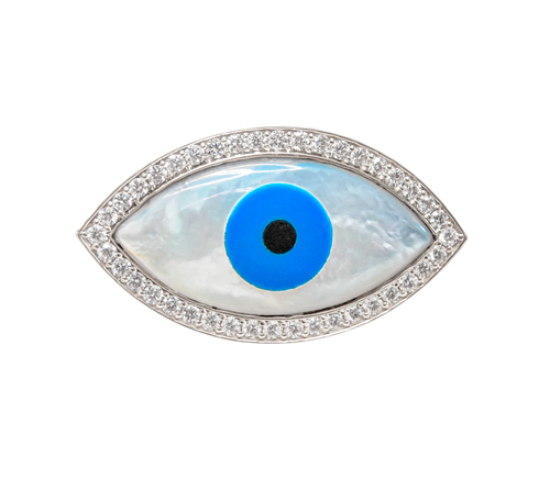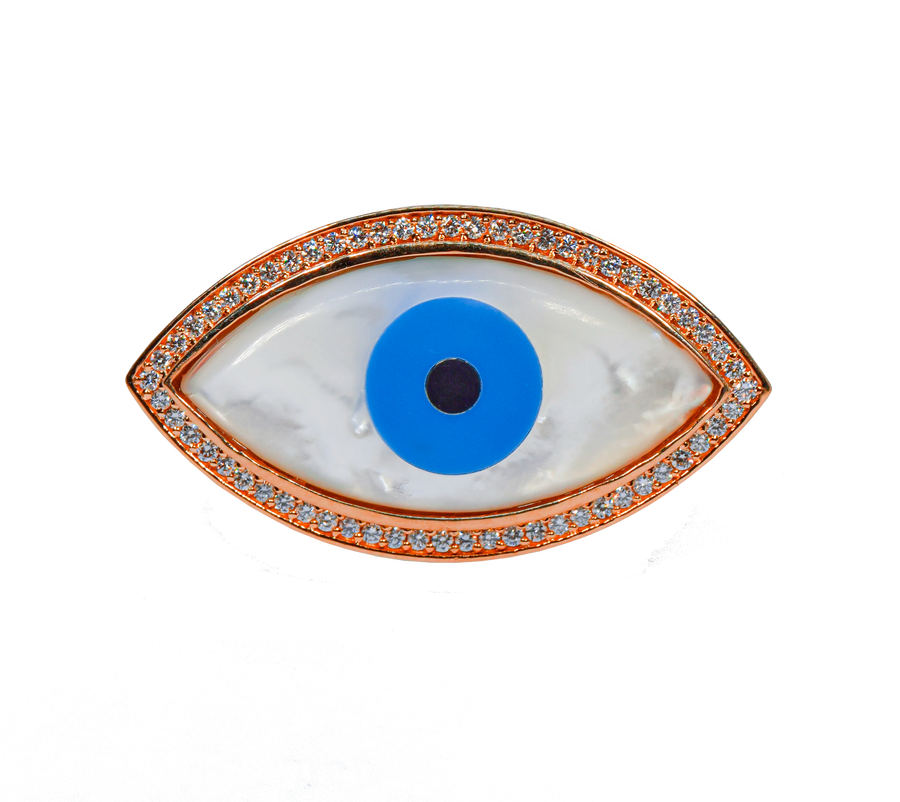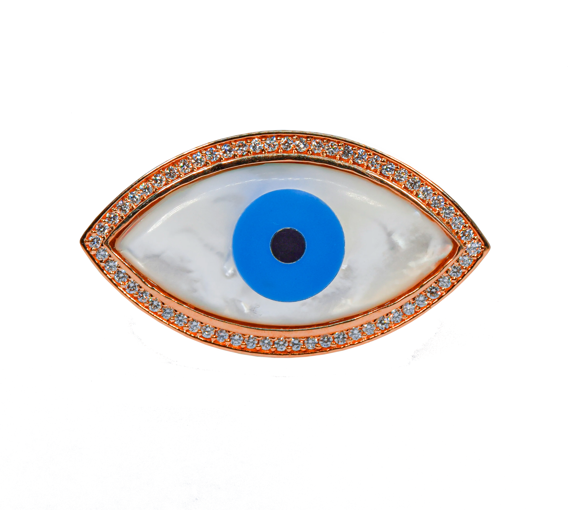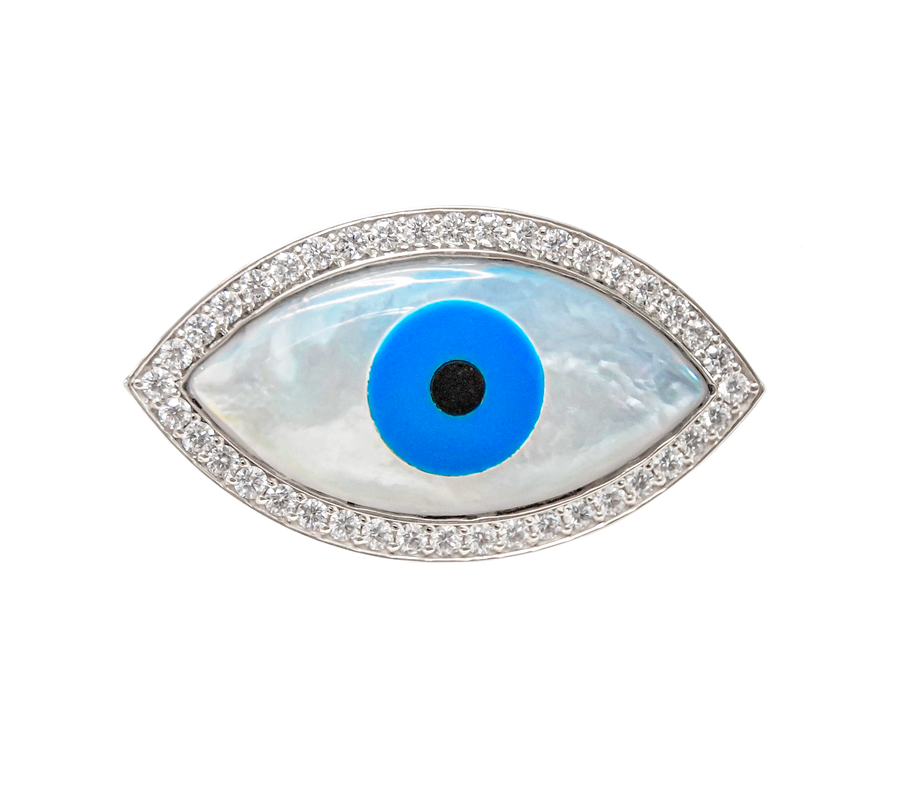 Design: Marquise-shaped Evil Eye symbol representing protection and clarity