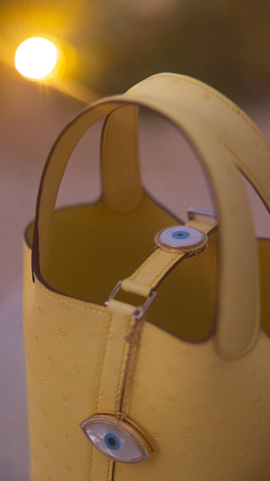 Part of the signature Bag Bijoux collection, this refined piece is crafted to elevate Hermès staples like the Birkin 25, Kelly 25, and Kelly Cut. Whether worn as a luminous bag charm or a meaningful pendant, the Evil Eye Bag Bijoux offers a radiant layer of intention and style—rooted in tradition, made for today.