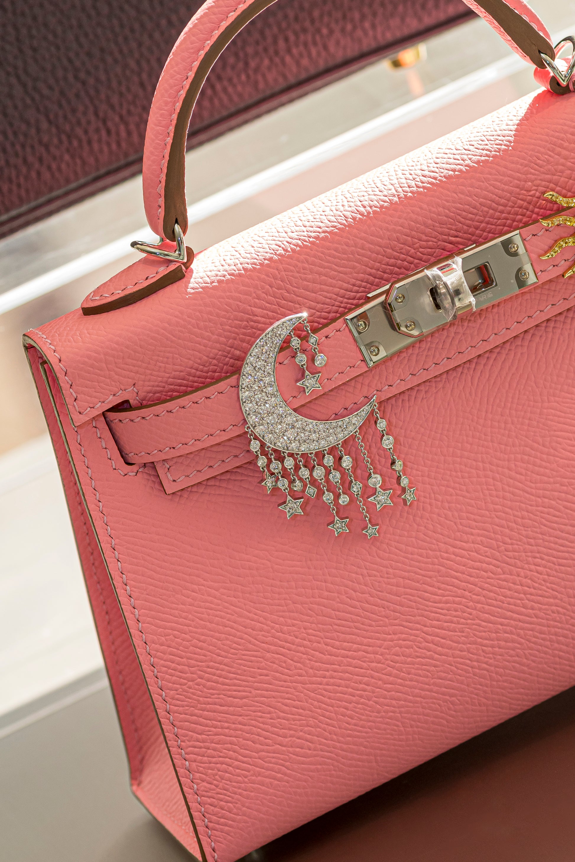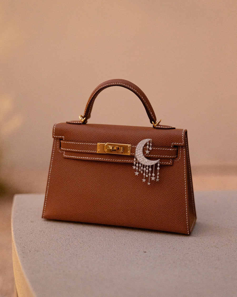 A highlight of the Bag Bijoux collection, the Crescent Moon is designed to adorn iconic handbags such as the Birkin 28 & 30 and Kelly 28 & 30, while also transitioning effortlessly into a sculptural pendant when paired with a fine chain. With its pavé-set surface and graceful silhouette, it adds luminous dimension to any look.