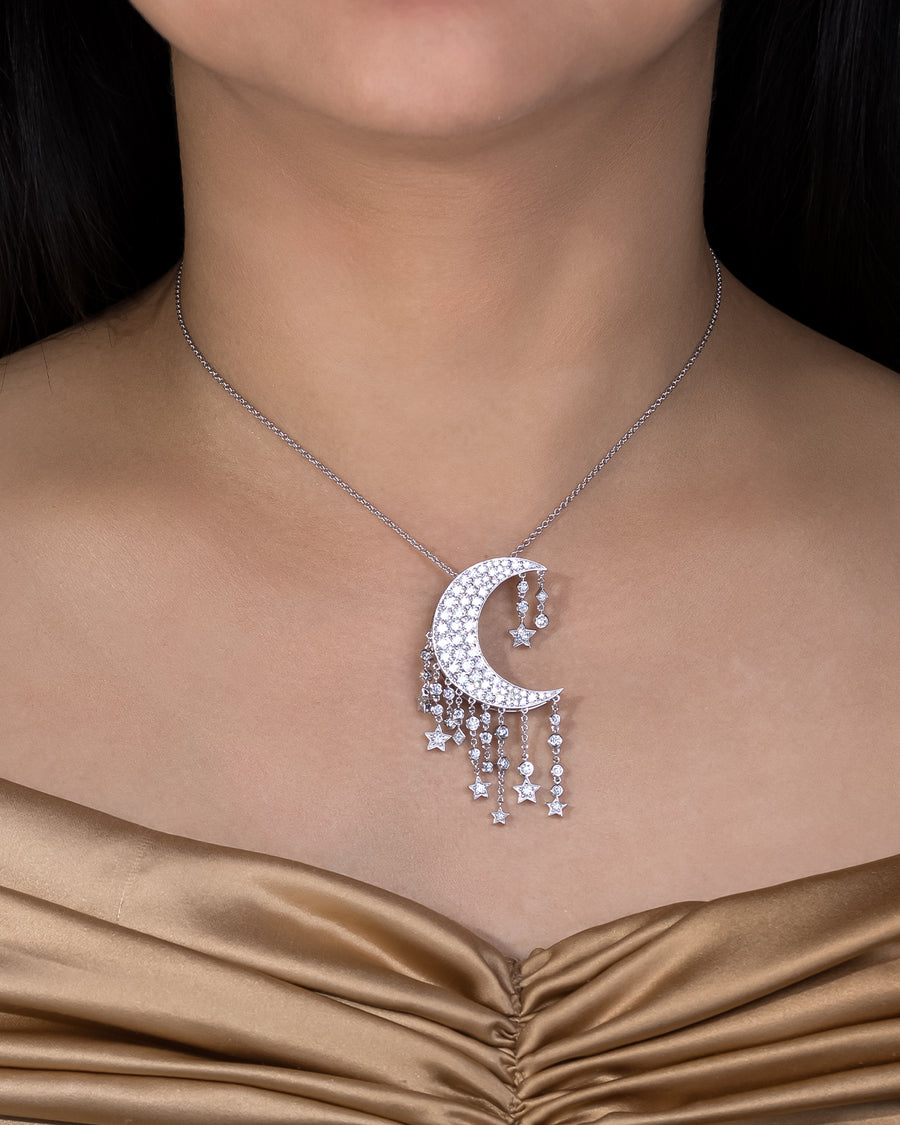 Shop this amazing CRESENT MOON Bag Bijoux set in 18KT White Gold with Natural FG/VVS-VS Diamonds by ASHNA MEHTA.