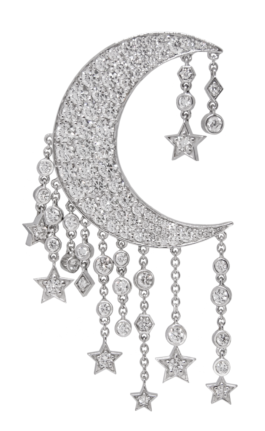 Design: Crescent moon motif with pavé diamond setting