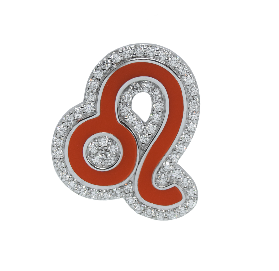 Design: Leo zodiac symbol in pavé-set diamonds with neon enamel detailing