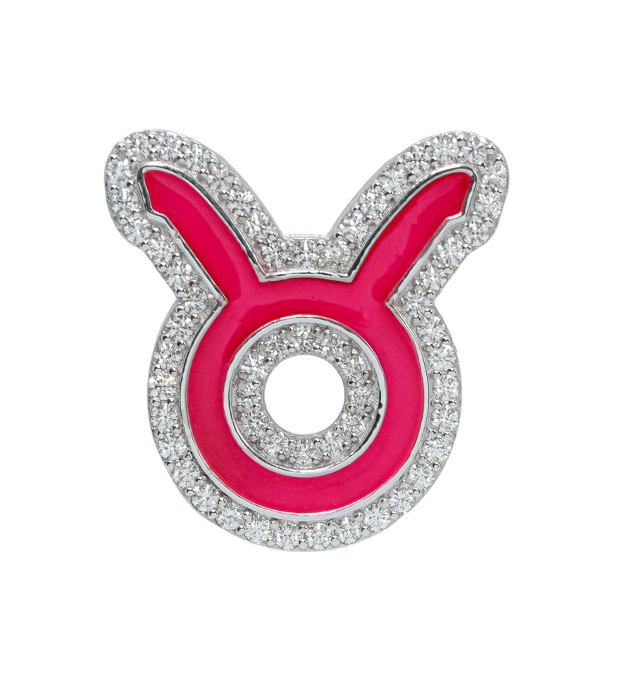 Design: Taurus zodiac symbol in pavé diamonds with enamel detailing