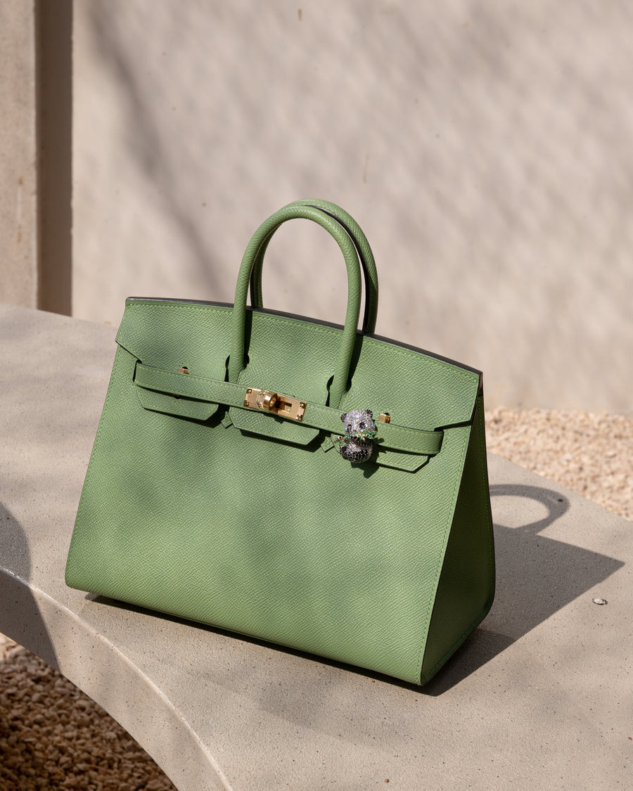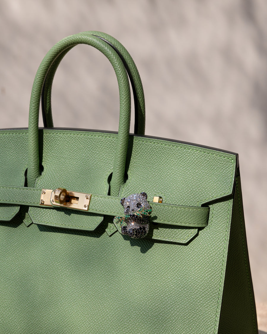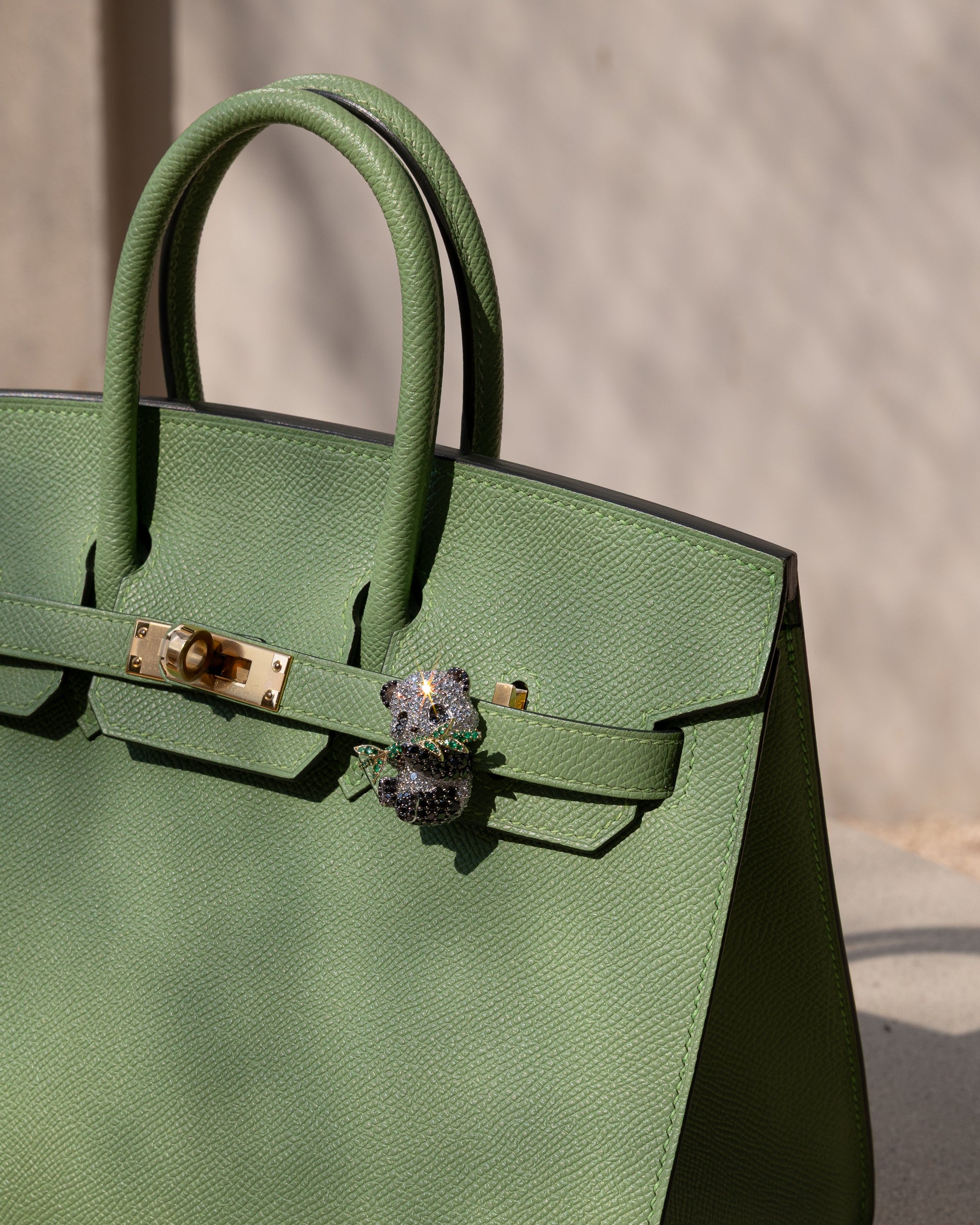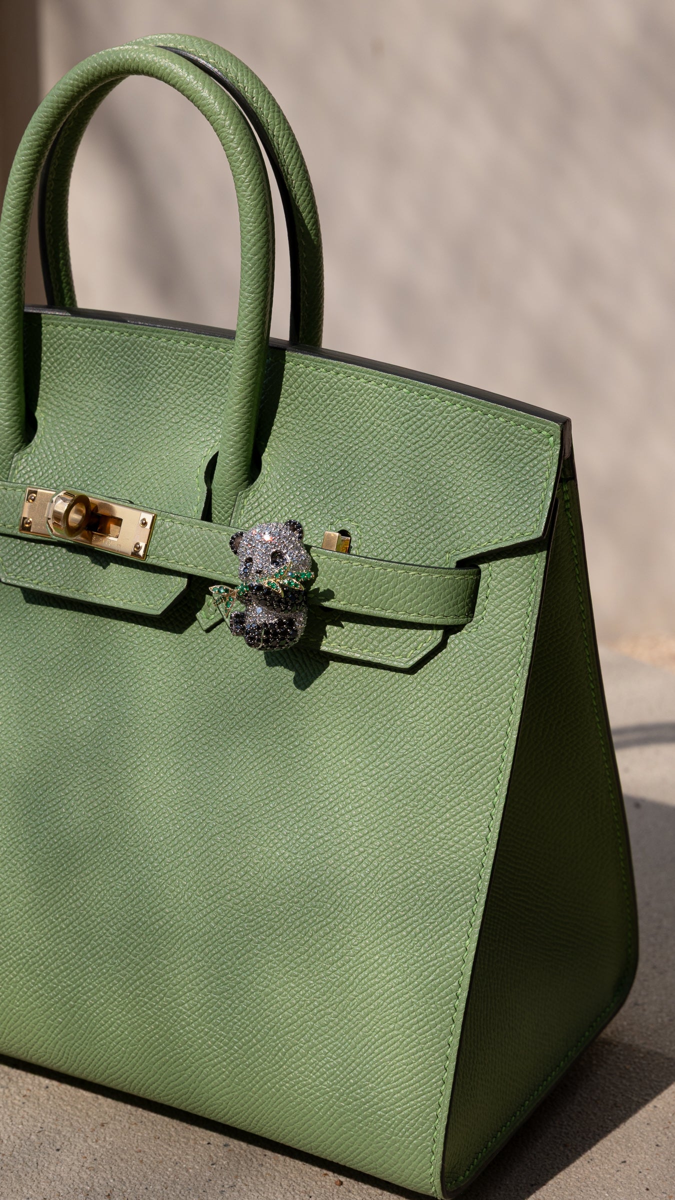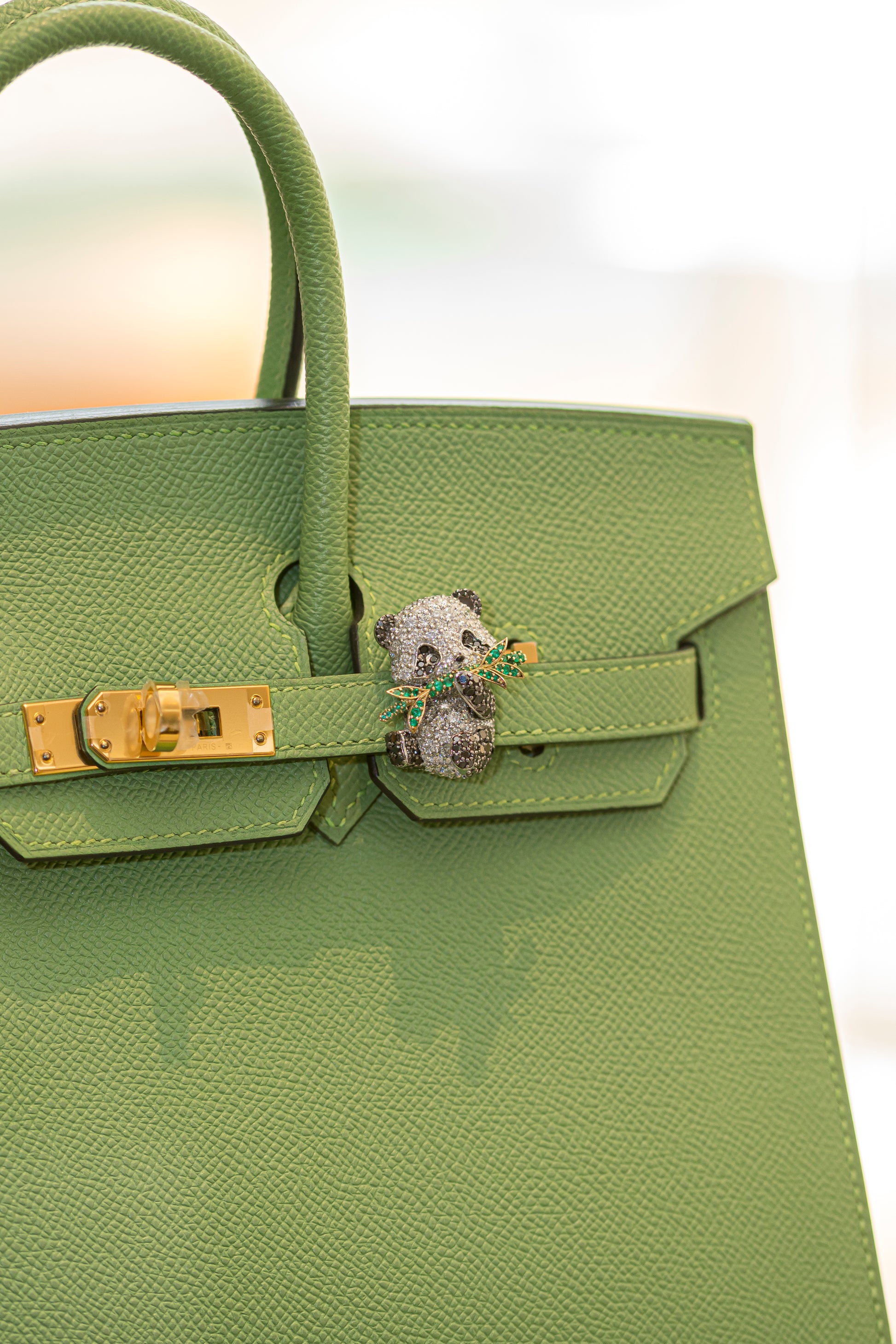 Part of the Wildlife Bag Bijoux collection, this piece is designed to adorn luxury handbags such as the Birkin 25, Kelly 25, and Kelly Cut, while effortlessly transforming into a pendant when paired with a fine chain. Its whimsical silhouette, sparkling diamonds, and vivid emerald accents make it a collector’s favorite and a charming symbol of peace and playfulness.