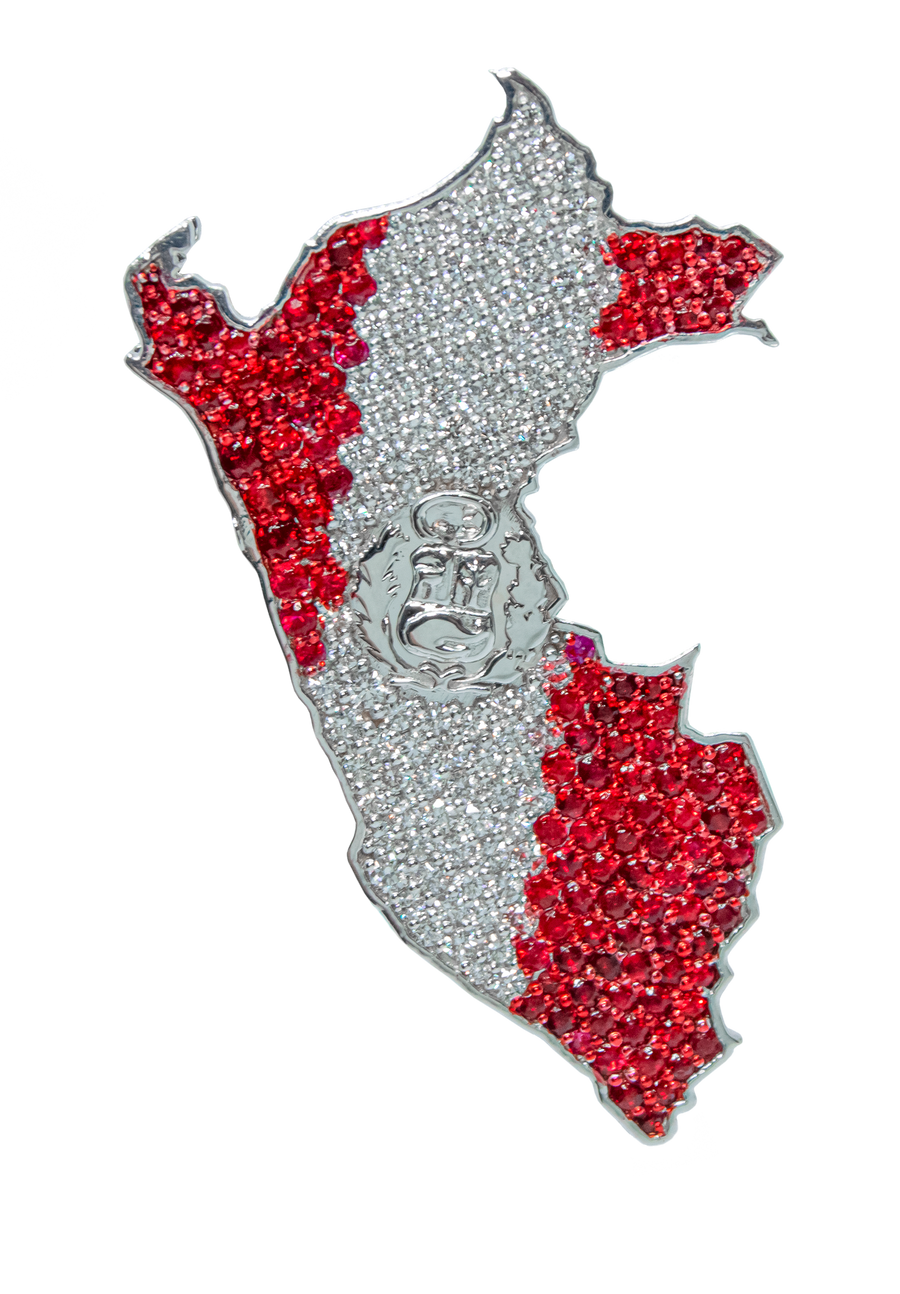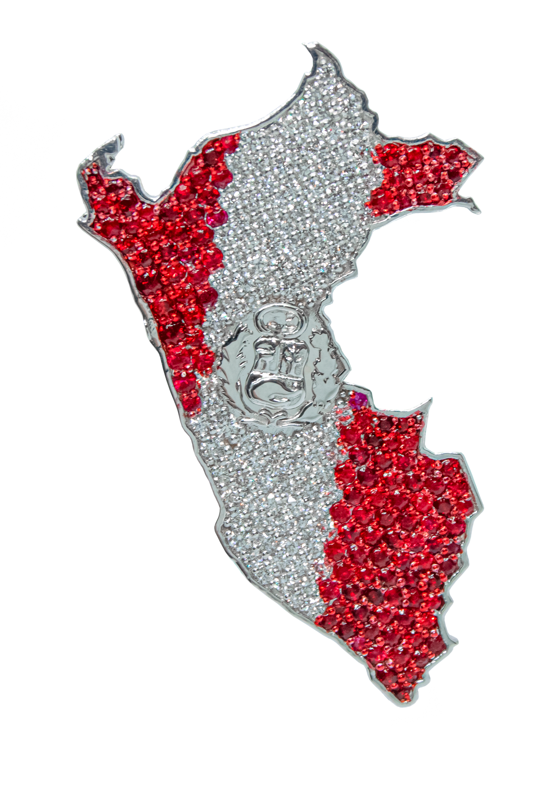 The Peru Flag Bag Bijoux by ASHNA MEHTA is a radiant tribute to national pride and refined craftsmanship. Sculpted in rich 18K yellow gold, this distinctive charm captures the bold elegance of the Peruvian flag through a vibrant ruby centerpiece flanked by natural FG color, VVS–VS clarity diamonds.