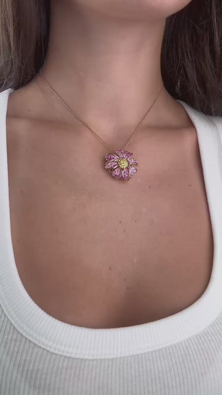 Gemstones: Natural Fancy Yellow Sapphires (center), Natural Pink Sapphires (petals)